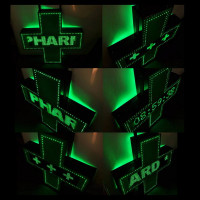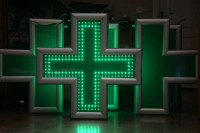 LED pharmacy crosses are made from the highest quality materials you can find in our market. The front sides of our crosses are made of clearit in the desired color , or PVC film glued to the clearit suitable for all weather conditions.